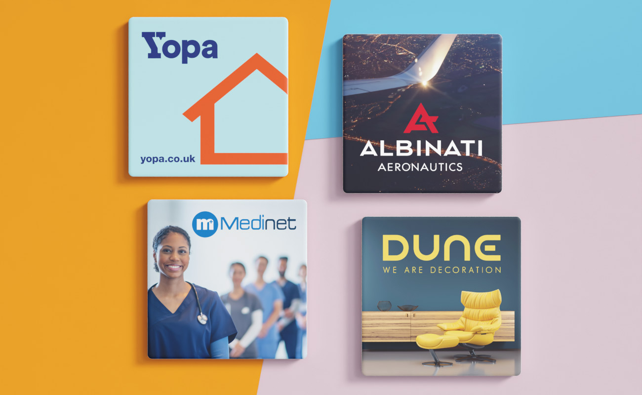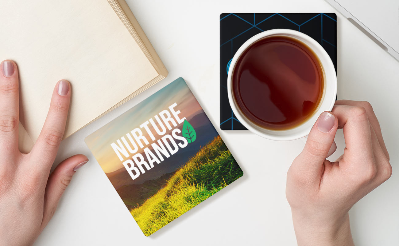 当社のコースター製品『フォーム』は、滑らかに磨きあげられたセラミック製の表面と滑りにくいコルク製のベースの高級感がある仕上がりです。ロゴなどを入れるために広い印刷エリアを備え、ロゴや画像、アートワークなどを写真印刷技術によって精巧に印刷してアピールするには理想的なデザインです。また、この製品は日々の生活の中で愛用される、素晴らしい製品です。お見積りや、迅速な製品のお届け、印刷方法などに関する情報は、お気軽にお問い合わせください。