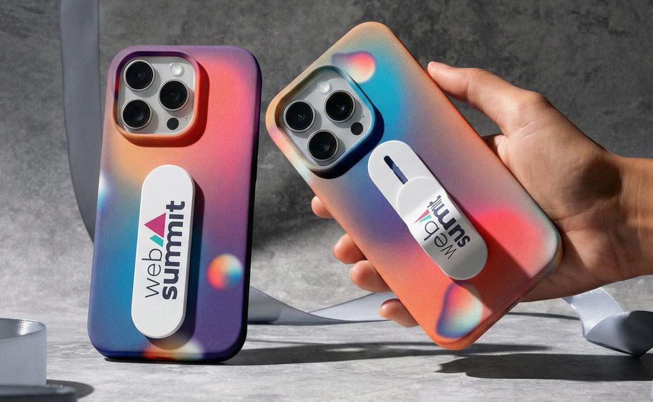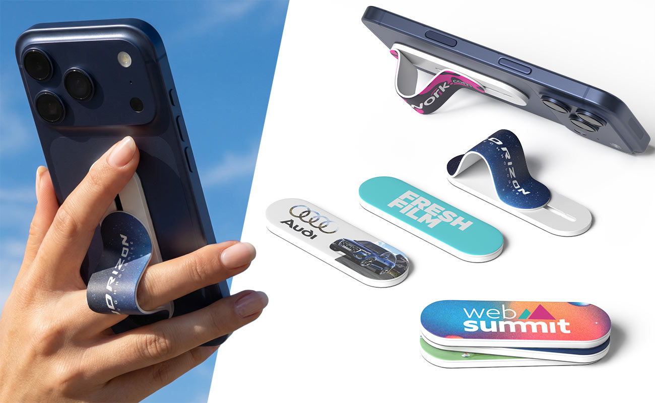 当社のフォングリップ『ディジット』は、見た目にな楽しく使い方もシンプルで、長期間に亘って何度も繰り返し使用していただくことのできるノベルティ用の製品です。この製品には、ロゴやアートワークなどを写真印刷で入れることのできる印刷エリアが備わっています。また、『ディジット』の装着は、粘着性の裏面から保護シールを剥がしてスマホに30秒ほど押し付けるだけで完了です。装着後は、フィンガーホルダーを上下にスライドさせて調整して、心地よく使用することができます。