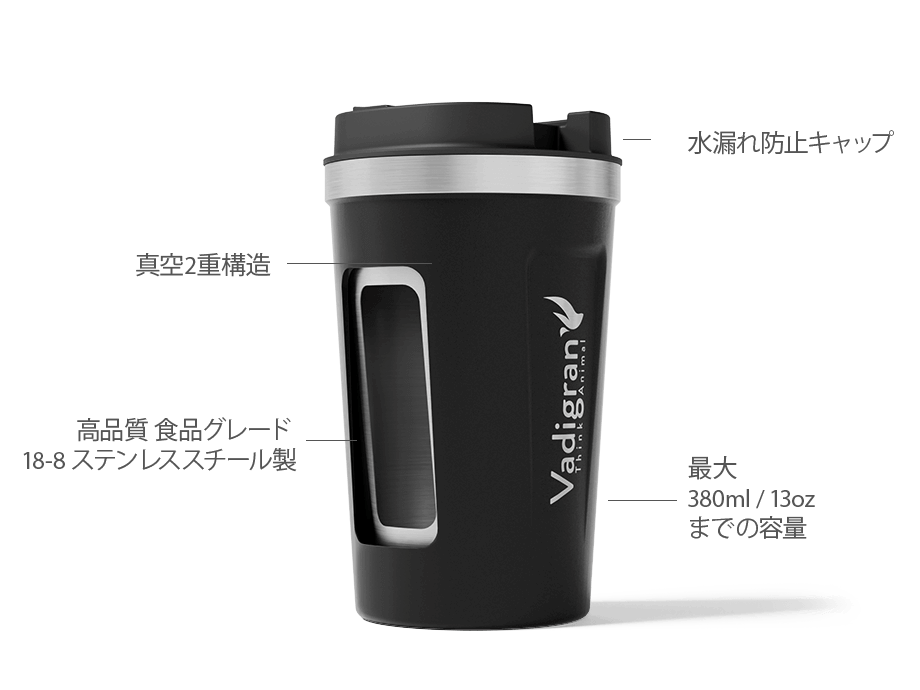当社のトラベルカップ製品『アロマ』は、高品質ステンレススチール製で、こぼれ防止の安心構造のフタ、二重壁真空断熱構造による保温・保冷、フリップ式のフタで保護された便利な飲み口などを特長とする製品です。また、ロゴやブランドメッセージなどを印刷することができる人気アイテムです。お見積りや名入れ方法に関するお問合せやサンプルのご要望、納期のご確認などは、いつでもご連絡ください。