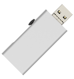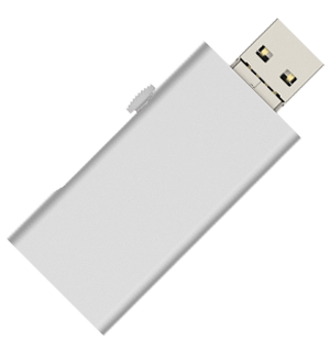 『スライド』USBメモリは、利便性と機能性を追求したモデル。本体の片方にはUSB タイプ-Cコネクタが装備され、本体側面のボタンをスライドさせてコネクタの出し入れができます。反対側には従来の標準USBコネクが装備され、その上部を上に押し上げて開くと、その内側に装備されたマイクロUSBのコネクタを使用することが可能です。この名入れUSBメモリのユーザーは、3種類のコネクタを備え持つ利便性により、様々な種類のデバイスに接続して利用することができます。『スライド』は、ロゴやブランド・メッセージ、ウェブURL、スローガンなどをスクリーン印刷、またはレーザー彫刻での名入れに対応しています。