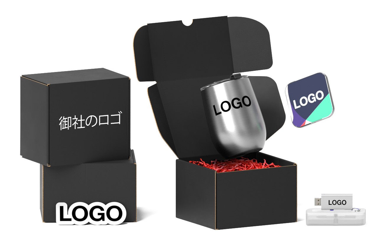 当社のギフトセット製品『コーポレート』は、厳選された4種類の製品をひとつのギフトボックスにまとめたセットモデルです。セットには、マグネットボックス入りのUSBメモリ、携帯カップ、ワイヤレス充電器、トートバッグが含まれます。ギフトボックス上部をはじめ、セットに含まれる各製品には、ロゴやスローガン等を名入れすることが可能です。セットに含まれる一部の製品は、特定された他のモデルとの交換も可能です。製品価格、名入れ方法、納期などの問い合わせ、製品の組み合わせオプションについてのご相談は、お気軽にご連絡ください。