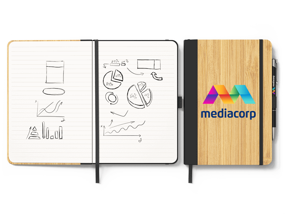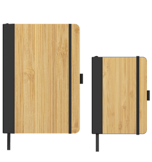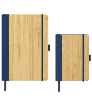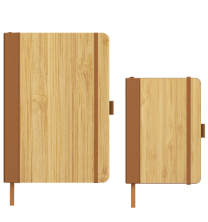 バンブー素材の美しい表紙が特徴のノート『グローブ』は160ページあり、メモやアイデア、ミーティングでの内容などを書き留めることができます。『グローブ』には便利なゴムバンドとペンホルダーも付いており、オリジナルペンと組み合わせてお使いいただけます。大きなブランディングエリアは、ロゴをスタイリッシュにアピールするのに最適なデザインです。