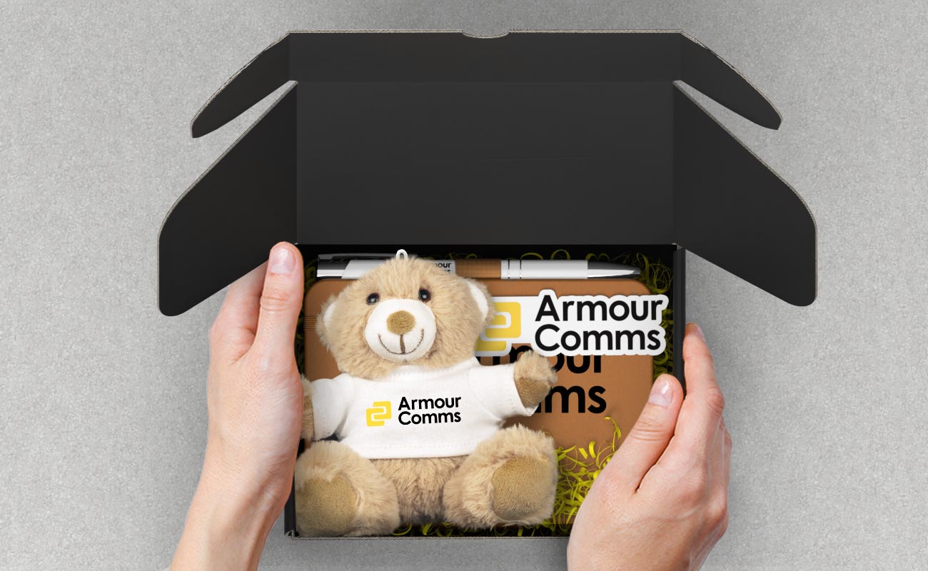 当社のセット製品『ベアボックス - S』は、テディベア製品の『ポウ』、ノート製品『ソフティ』とお好きなペン製品、ステッカーを詰めた気の利いたマーチャント・パックです。含まれる製品は、全てにロゴなどを名入れすることができ、製品を詰めるギフトボックスにもロゴを入れることが可能です。最新の価格でのお見積りのご要望、エクスプレス配送やロゴ入れの方法に関するご質問などありましたら、いつでもお気軽にお問い合わせください。