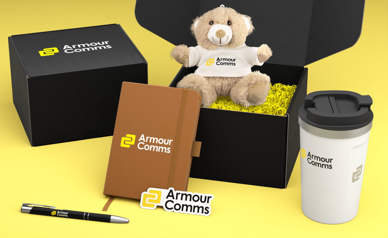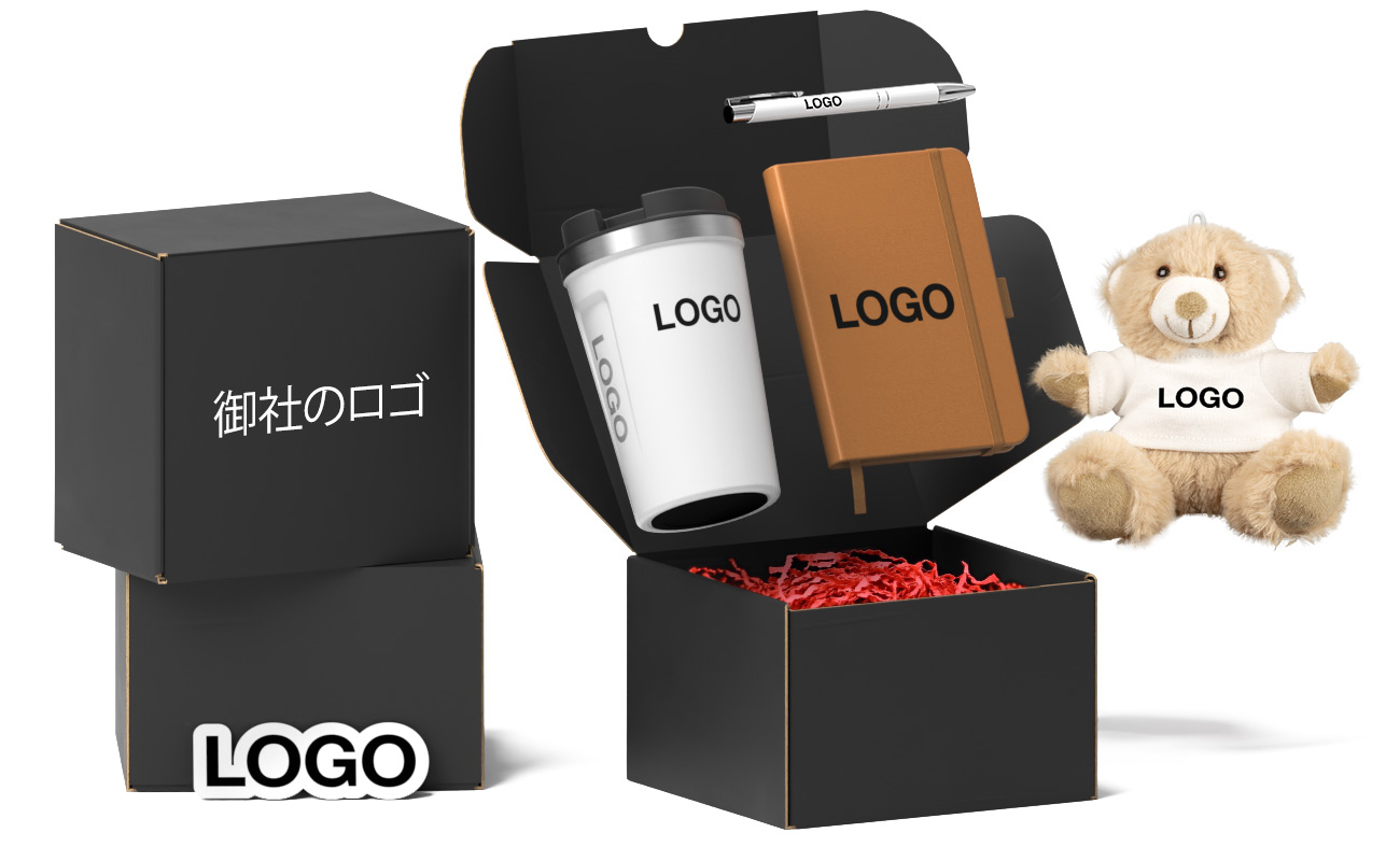 当社の人気製品を詰め込んだマーチャントパック『ベアボックス - M』は、テディベアの『ポウ』、ノート製品の『ソフティ』、お好きなペン、ステッカー、携帯用カップがセットに含まれ、どれもロゴを入れられる製品です。これらの製品を詰めるギフトボックスにも、ロゴを入れられます。最新の価格情報、エクスプレス配送やロゴ入れの方法などに関するお問い合わせは、すぐにでも当社までご連絡ください。