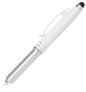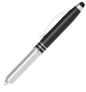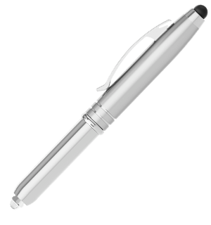 『ラディアンス』は、洗練されたデザインと高い機能性を兼ね備え、タッチペンやトーチライト機能まで備わった便利な製品です。ペンのボディ部分には、写真印刷またはレーザー彫刻によって精巧にロゴを入れることができるように、印刷エリアが備わっています。ペンの軸をふたつに分離させて取り外すと、ペン本体が中にあります。シルバーのトリミングやクリップは、プロフェッショナルな印象を与え、それがノベルティ製品として人気が高い理由のひとつでもあります。