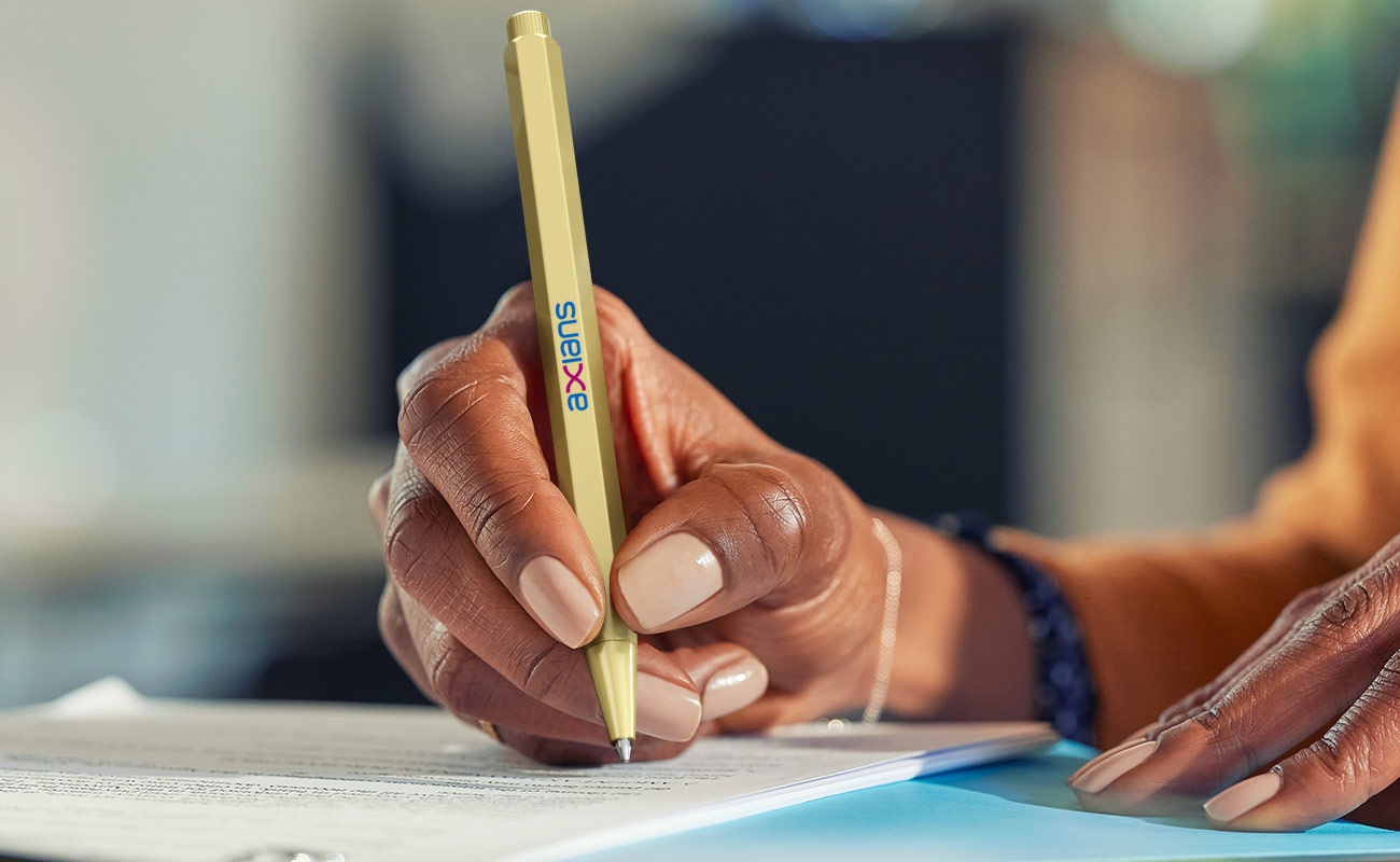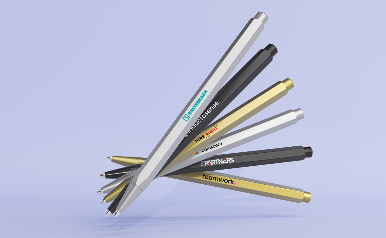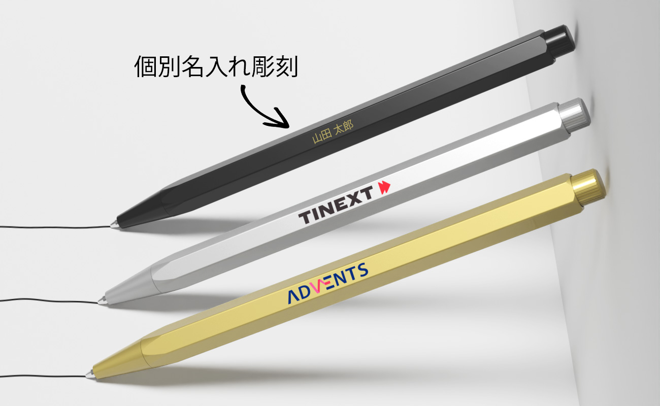 当社のボールペン製品のひとつ『グラビティ』は、よく練られたデザインと優れた技術による耐久性を兼ね備える製品です。プレミアム銅合金製で、手に馴染む心地よい重みがあり、思う通りに書ける滑らかな使いやすさは、外観の良さに負けない品質を感じさせるものです。六角形のボディが特徴的で、斬新な見た目と実用的なグリップの良さを提供し、その形からペンが転がってしまわないように安定させ、長時間の使用でも快適な書き心地を保ちます。ロゴを入れるために備わった印刷エリアには、ディテールまで精巧にロゴを入れてアピールすることができます。ギフトアイテムとして、とても人気が高いボールペンです。