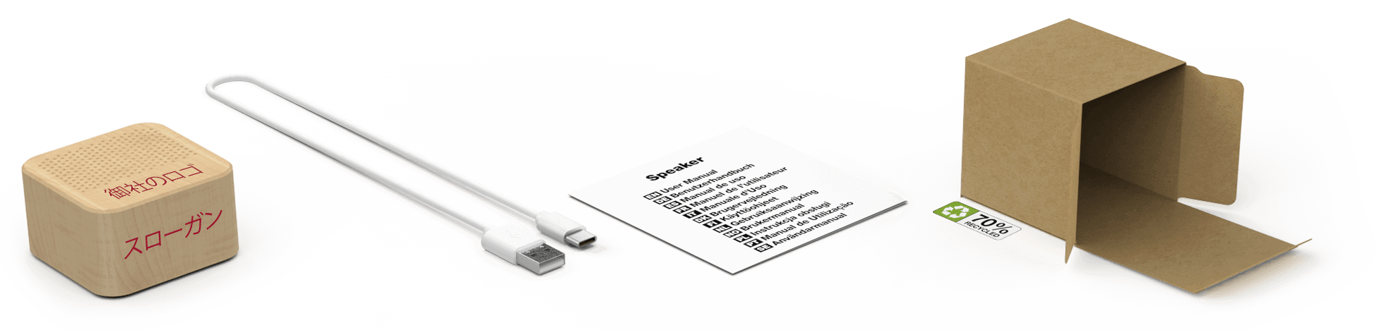 Bluetooth® ネームとは、オーディオ製品をペアリングするスマートフォンやタブレットなどに表示される、オーディオ製品に設定された名前です。このオーディオ製品名をカスタマイズして販促や記念品などの目的に適した名前を付けておくことで、更に名前がユーザーの目に触れる機会が増えて記憶に残りやすくなる効果が期待できます。このサービスのご注文がない場合のオーディオ製品はデフォルト設定の名前で「Promo Audio」と表示されます。アクセサリ