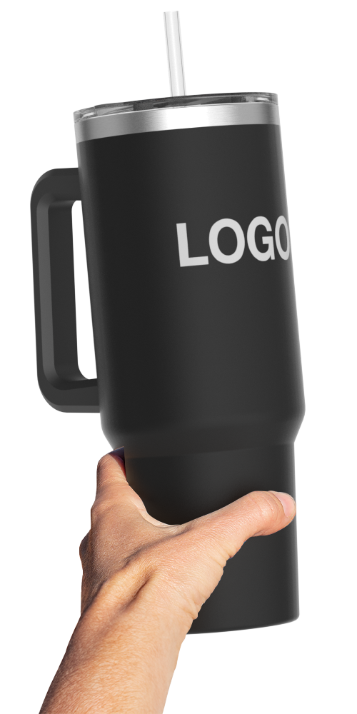 携帯用カップ『ジャンボ』の特長は、二重壁断熱構造、持ちやすい取っ手、飲み口付きの安心設計なフタ、そして耐久性の高さで知られるTritan™製のストロー付きと、人気の条件がそろったタンブラーモデルです。また、ロゴやスローガンなどを精細にプリントするための印刷エリアも、もちろん備わっています。お見積りやサンプルのご要望、配送に関するお問い合わせなど、いつでもお気軽にご連絡ください。